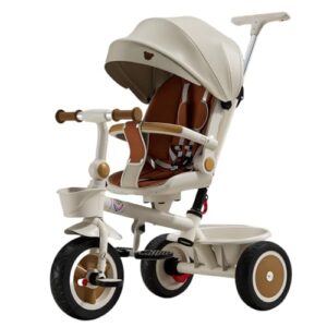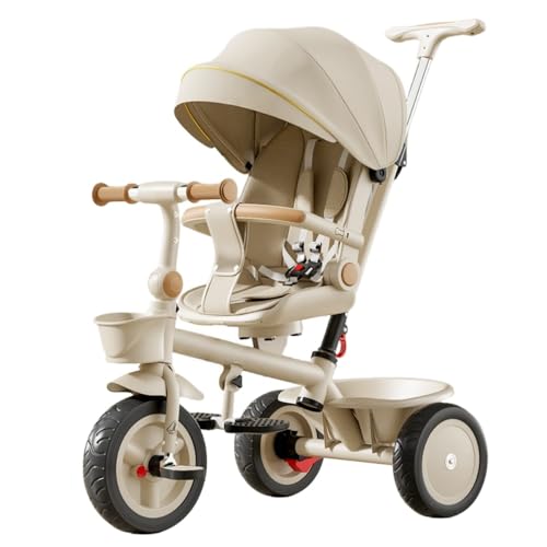 TPPT子供用三輪車は1-3歳向けの折りたたみ式乗用玩具で、ペダル式トロリーです。リクライニング機能、サンシェード、フットレスト、ダイニングトレイ付き。シャンパン色。