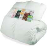 安眠工場の上質羽毛布団(シングル)は、羽毛量1.0kg、ホワイトダウン90%で軽量、防ダニ加工済み。日本製で、国内洗浄・抗菌防臭・パワーアップ加工を施し、長期保証付き。