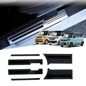 FOR 新型 スペーシア スペーシアカスタム MK54S MK94S スペーシアカスタム エクステリアドアシルストリップ ステップカバー ドアスカッフプレートステンレス鋼材料 車種専用設計スクラッチに強い耐摩耗性保護インテリアパーツ6個の断片を簡単に取り付ける スペーシアカスタムmk54s スペーシアカスタム内装アクセサリー スペーシアギア (ブラックチタン)