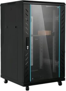 イーサプライ サーバーラック 19インチ 中型 24U 奥行60cm メッシュパネル 棚板×3枚 鍵付き ブラック EZ1-SV034BKの高価買取