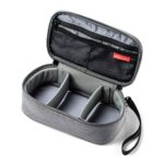 イーサプライのトラベルポーチは、ガジェットやPC周辺機器を整理できる仕切り付き。充電器やモバイルバッテリーの収納に最適。ストラップ付きで持ち運びが便利なグレーのデザインです。