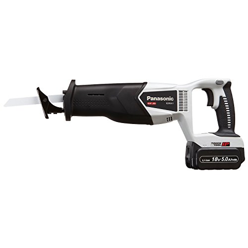パナソニック充電レシプロソーEZ45A1は、14.4V/18V対応で金属管Φ130mm、木材235mmの切断が可能。18V大容量5.0Ah電池パック2個、充電器、ケース付属。