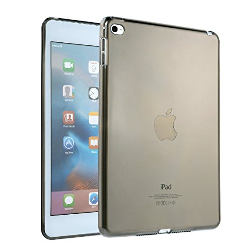 iPad mini5およびmini4対応のクリアなソフトシリコンケース。軽量で透明なデザインが特徴。グレー色で、衝撃吸収性も高く、保護力に優れています。