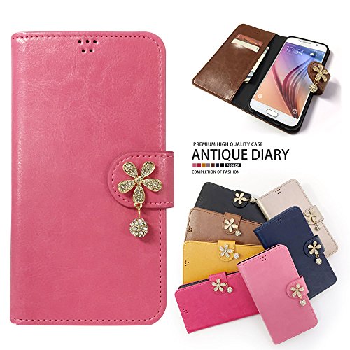 フラワー デコのキラキラダイアリーカバーです。docomoらくらくスマートフォンプレミアム F-09E対応、マグネットタイプの手帳型ケース。レザー製でカード入れ・ICカード収納付き。色はベビーピンクです。