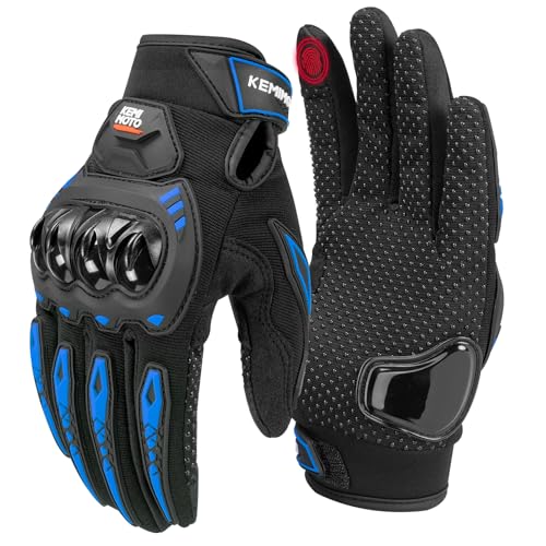 KEMIMOTO バイクグローブ 夏用 M ブルーは軽量で通気性に優れたデザイン。快適なフィット感を提供し、衝撃吸収パッド付きで安全性も確保。スマホ操作も可能なタッチスクリーン対応。
