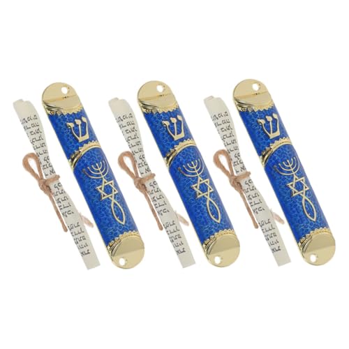 Cabilockの3セットのメズーザケースは、聖なる巻物を保護するための門柱型デザイン。色付きの塗装が施され、独特な美しさを持つヘブ製品。