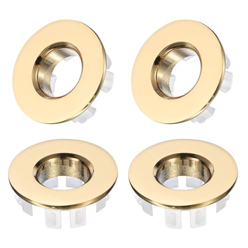 uxcellのシンクオーバーフローリングは、バスルームやキッチン用の中空真鍮製トリム。ゴールドトーン仕上げで、洗面台の排水カバーとして4個セットで使用できます。