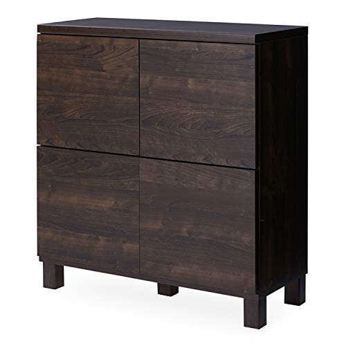LOWYAのキャビネットは、幅74cmの日本製サイドボードです。ダークブラウンのカラーでスタイリッシュなデザイン。扉付きで収納力もあり、リビングに最適なおしゃれな収納家具です。