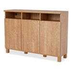 LOWYAのキャビネットは日本製で、幅110cmの扉付きサイドボードです。おしゃれなデザインとナチュラルな色合いが特徴で、リビングの収納に最適なオープンラックです。