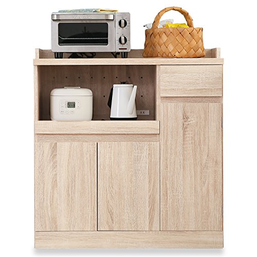 LOWYAのキッチン収納、食器棚チェストAタイプは、下段がナチュラルなデザインで、シンプルながら収納力抜群。調理器具や食器を整理整頓でき、キッチンをすっきりと見せます。