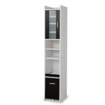 LOWYAの食器棚は、幅32.7cmのハイタイプで、スタイリッシュなブラウン/ホワイトのデザインが特徴です。キッチン収納に最適で、限られたスペースを有効活用できます。