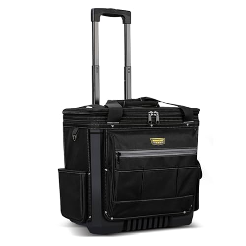 GUREITOJPのツールバッグは、オックスフォード製で高耐久。キャスター付きで運搬便利、コンパクト設計。ドライバーやプライヤーなどの工具を整理できるホルダー付き。DIYや建設作業に最適。