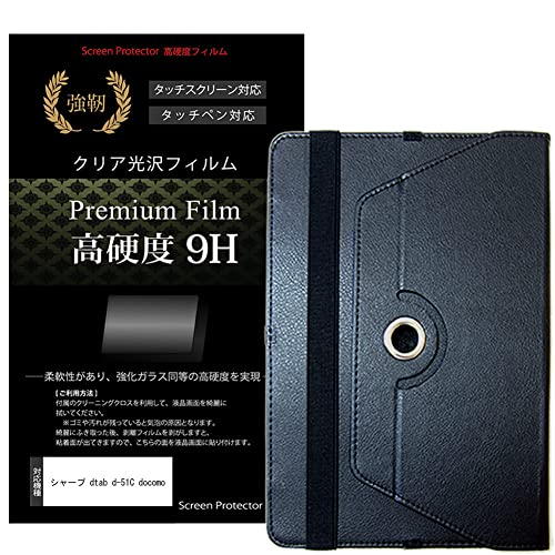 シャープ dtab d-51C docomo用の360度回転スタンドレザーケース(黒)と高硬度9H液晶保護フィルムのセット。タブレットを保護し、快適な使用を実現します。