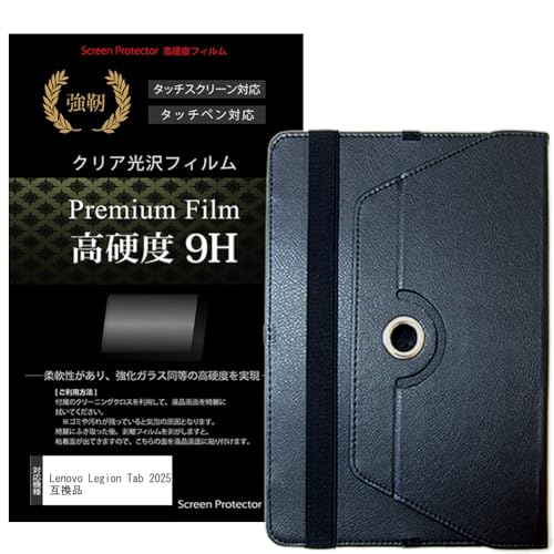 Lenovo Legion Tab 2025年版(8.8インチ)用の360度回転スタンドケースと高硬度9Hの液晶保護フィルムのセット。レザー製のカバーは耐久性があり、便利な機能とデザインを兼ね備えています。