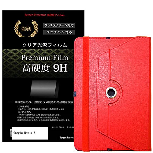 Google Nexus 7 2012年版用の360度回転スタンドレザーケースと高硬度9Hの液晶保護フィルムのセットです。赤色でスタイリッシュ、持ち運びに便利。耐久性に優れ、デバイスを保護します。