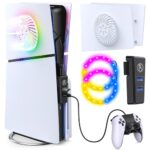 PS5スリム用カバープレート、LEDライトストリップ、USBハブ、冷却ベント対応。デジタル/ディスクエディション対応。ホワイト。
