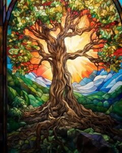 大きな木 数字キットによる絵画,ステンドグラス風,数字油絵 数字キット塗り絵 手塗り DIY絵 デジタル油絵 ホーム オフィス装飾,40x50cm 带框