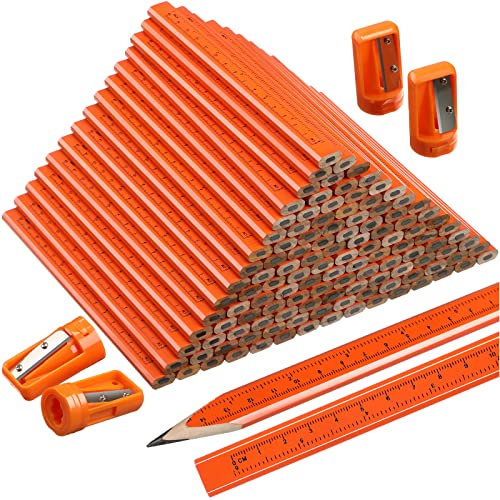 120本のオレンジ色建築用大工鉛筆。バルクフラットデザインで持ちやすく、プリントルーラーと鉛筆削り付き。木工用シャープペンシルとしても使え、プロやDIY愛好者に最適。