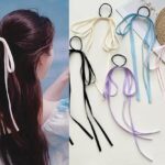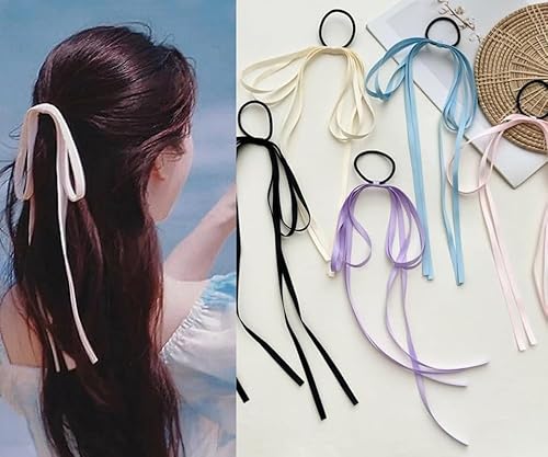 FAMEZAのラグジュアリーなヘアリボン5個セット。リボンやネクタイ、タッセルデザインが特徴。ポニーテールやシュシュとして使用可能。カラーはブラック、ベージュ、ブルー、パープル、ピンク。