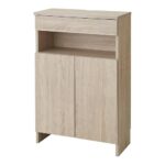 リコメン堂のルーター収納ボックスは、電話台やWi-Fiラックとしても使える木製キャビネット。幅60cmでスリムデザイン、ケーブルや電源タップを整理できる機能性抜群の収納家具です。色はオーク。
