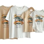 ジュタオピンの親子ペアルックTシャツです。赤ちゃんとお揃いのデザインで、男の子向け。夏にぴったりのコーディネートやプレゼントに最適です。