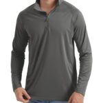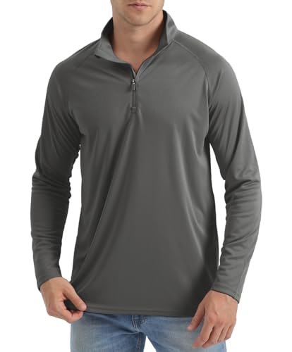 TACVASENのロングスリーブインナーシャツは、接触冷感素材を使用し、ハーフジッパーと紫外線カット機能を備えています。作業用、登山、お釣りに最適なダークグレーのLサイズです。