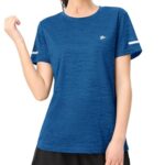 TACVASEN レディーススポーツTシャツは、速乾性があり、無地デザインでシンプル。ランニングやトレーニング、ハイキング、フィットネスに最適。ミディアムブルーのLサイズで、ジムやテニスにも適しています。