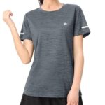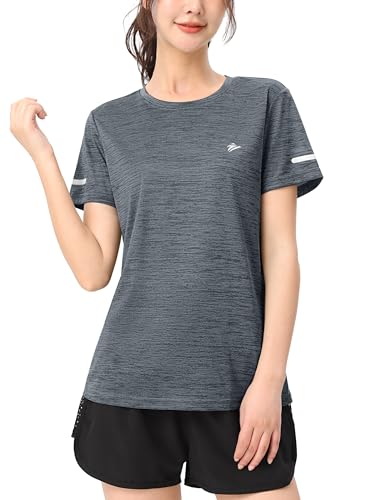 TACVASENの半袖レディース速乾スポーツウェアは、夏のトレーニングに最適なおしゃれな無地のスウェットTシャツです。大きいサイズのダークグレーXLは、テニスやフィットネスにも最適です。