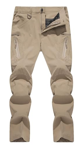 TACVASENのアウトドアロングパンツは、薄手のカーゴデザインで春夏用に最適。防撥水機能を備え、釣りや作業、トレッキングに最適。シンプルな無地で、カラーはカーキ、サイズはMを用意。