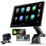 9インチ車載モニターは、前後2カメラ搭載でワイヤレスCarPlay&Android Auto対応。全画面タッチスクリーン、バック連動、DC12v~32v対応。2年間のメーカー保証付。