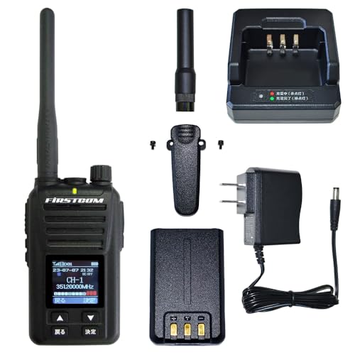 F.R.C. FIRSTCOM FC-D301 PLUS (W)は、97チャンネル対応のUHFデジタル簡易無線で、高出力5W、ハイパワー設計、充電器等の付属品あり。