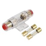 ACROPIX AWGインラインヒューズホルダーは、50A AGUヒューズ付きで、4, 6, 8ゲージのユニバーサルカーオーディオシステムに対応。ゴールドトーンのデザインで、耐久性と美しさを兼ね備えています。