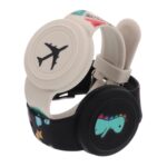 恐竜デザインのキッズ用リストバンド2個セット。紛失防止デバイス付きで安心!カラフルな漫画スタイルが可愛く、遊びながらも安全対策が可能。