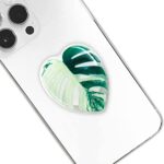 トロピカルなモンステラ葉っぱデザインの携帯電話ホルダー。多機能で折りたたみ式、拡張可能。すべてのスマートフォンに対応し、かわいく携帯を持ち運べます。