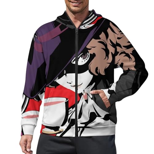 「パーカー ジップアップ メンズ 女神异闻录5」のアニメ柄カーディガン。ゆったりとしたデザインで、長袖・フード付き。春秋冬に最適で、男女兼用の大きいサイズ2XL。色落ちしない素材を使用し、部屋着にも最適です。