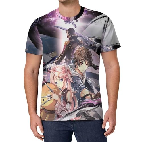 Tシャツ メンズ 半袖 英雄伝説『軌跡』シリーズ『創の軌跡』デザイン。アニメ柄で萌えグッズとして人気。透けない素材のクルーネックタイプ、大きいサイズ4XLまで対応。