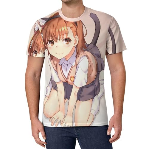 とある御坂美琴デザインの猫耳Tシャツ。メンズ向けで夏にぴったりの快適素材。透けないクルーネック仕様で、大きいサイズLも用意。アニメ柄の萌えグッズで、ファン必見のアイテムです。