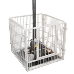 グリーンライフの大型ストーブガードは、幅86×奥行47.5×高さ63cmで、三方式の安全設計を採用。植毛仕上げのマルチカラーで、インテリアにも調和します。