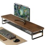 モニター台 卓上 パソコンスタンド 二層式コンピュータ高さ調節スタンド 放熱・収納引き出し付き 頑丈な厚手ボード スペース節約 ケーブル管理機能 ラップトップ冷却 (ウォールナット 50cm モデル)の高価買取