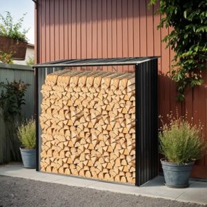 OSJ ウッドバスケット 薪小屋 物置 屋外 屋根付き 薪ラック 耐荷重300KG 薪棚 薪ストッカー 薪置き棚 大型 軽量 チール製 収納庫 整理 保管 乾燥 アウトドア 暖炉 焚火 組み立て式 室外 家庭用