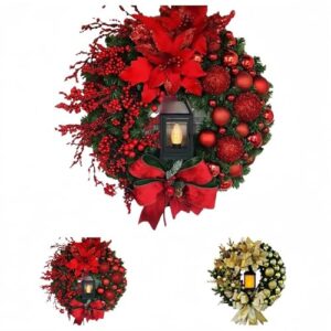 クリスマスリース – LEDランタン付き屋内屋外リース – 季節の飾りクリスマス装飾玄関、壁、暖炉、庭、バルコニー、寝室用 (A)