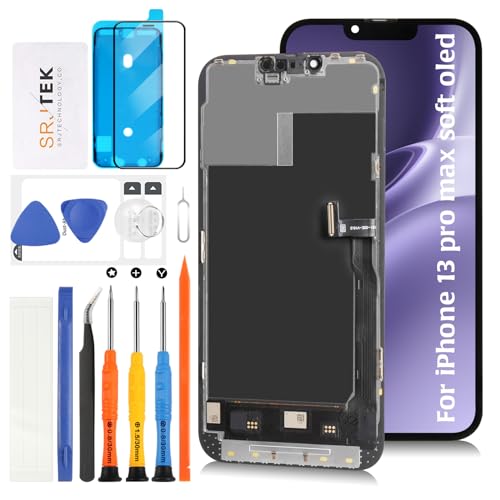 SRJTEKのiPhone 13 Pro Max用液晶パネルは、ソフトOLEDと120Hz対応。6.1インチのタッチパネルセットで、A2643などのモデルに適合。修理パーツと工具付です。