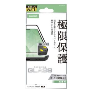 エレコム iPhone Air ガラスフィルム 光沢 強化ガラス 硬度10H カバー率99% 全面保護 極み設計 指紋がつかない 気泡が入らない 【貼り付けツール付き】 PM-A25BFLKGG