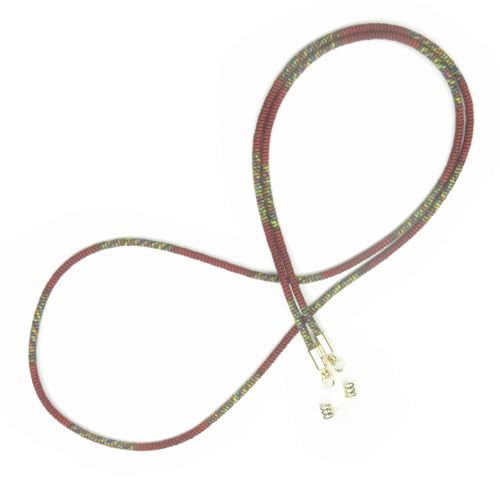 伊賀くみひものメガネチェーンは、絹100%で軽量(3g)。伝統工芸品として、日本製の正絹シルクを使用。色選択可能で、特に赤茶色が人気です。
