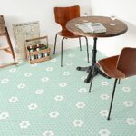 壁紙屋本舗のはがせる床リメイクフロアシートは、モザイクタイルデザインのパステル花柄で、幅65cm×1mのサイズです。防水機能があり、玄関やキッチン、トイレなど賃貸のリフォームにも最適です。受注生産品のためキャンセル不可です。