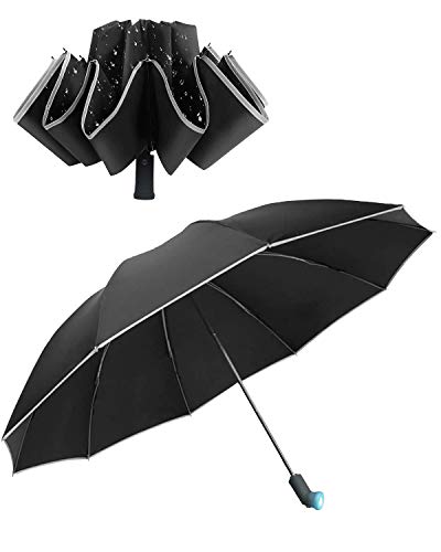 FL-Productsの逆開き式おりたたみ傘は、自動開閉機能を備え、LEDライト付きで防犯と防災に役立ちます。男女兼用で、日傘としても使用できるスタイリッシュなブラックデザインです。