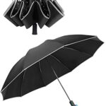 FL-Productsの逆開き式おりたたみ傘は、LEDライト付きで防犯・防災対策にも最適。自動開閉機能付きで使いやすく、男女兼用のスタイリッシュなブラックデザイン。