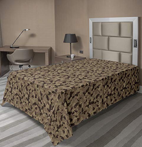 Ambesonneの迷彩柄フラットシーツは、アース調の反復デザインで、ハンティングファッションからインスパイアされています。ソフトで快適、ツインサイズのココアキャメル色の寝具です。