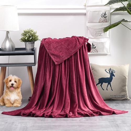 毛布/ブランケット(冬用)70x250cm、柔らかでなめらかな肌触り。オールシーズン使用可能、吸湿発熱、抗菌防臭対策。静電気ダブル防止機能あり、速乾性で洗濯楽々。ワインレッド色、ベビーやペット用としても適しています。