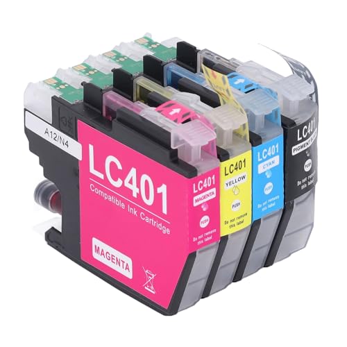 FLEXMAN LC401 4パック標準収量カラーインクカートリッジは、ブラック、シアン、マゼンタ、イエローの4色セット。高品質な印刷が可能で、互換性のあるインクジェットプリンタ用です。